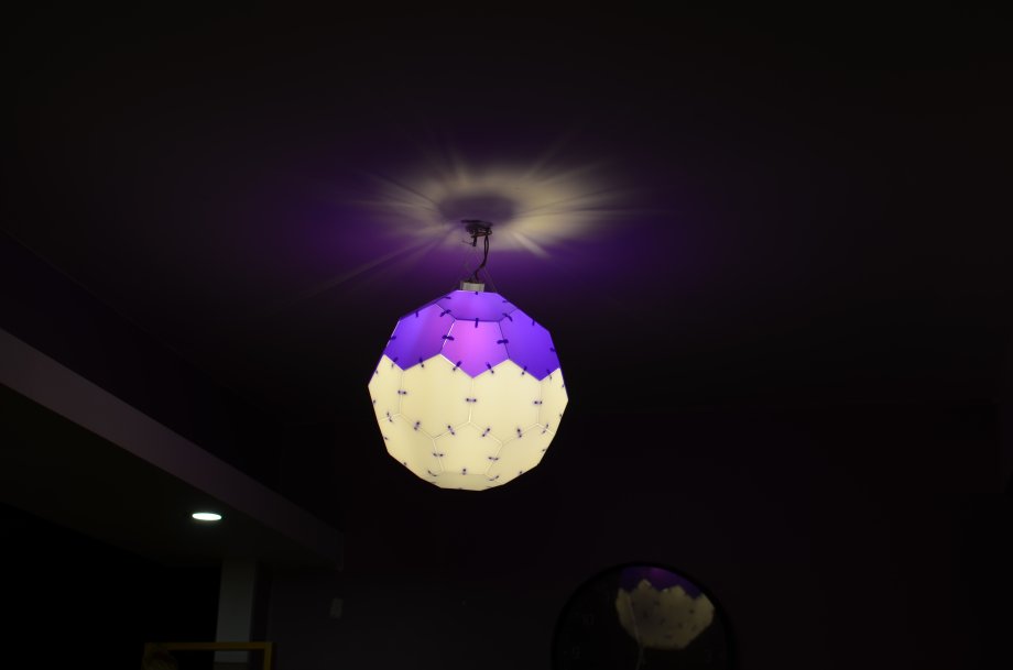 Cette lampe suspendue est un icosaèdre tronqué : https://fr.wikipedia.org/wiki/Icosa%C3%A8dre_tronqu%C3%A9